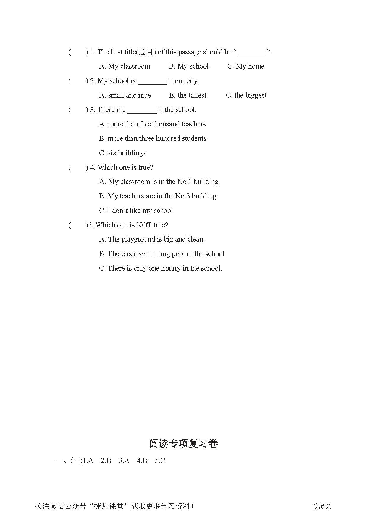 3~6年级英语人教PEP版配套试卷【单元卷+期中卷+期末卷+专项训练】 ├─ 6年级下册英语人教PEP版 │ ├─ 阶段试卷 │ │ ├─ 六年级下册英语人教PEP版阶段过关卷1(Unit1PartA)(含答案).pdf │ │ ├─ 六年级下册英语人教PEP版阶段过关卷1听力.mp3 │ │ ├─ 六年级下册英语人教PEP版阶段过关卷2(Unit1PartB&C)(含答案).pdf │ │ ├─ 六年级下册英语人教PEP版阶段过关卷2听力.mp3 │ │ ├─ 六年级下册英语人教PEP版阶段过关卷3(Unit2PartA)(含答案).pdf │ │ ├─ 六年级下册英语人教PEP版阶段过关卷3听力.mp3 │ │ ├─ 六年级下册英语人教PEP版阶段过关卷4(Unit2PartB&C)(含答案).pdf │ │ ├─ 六年级下册英语人教PEP版阶段过关卷4听力.mp3 │ │ ├─ 六年级下册英语人教PEP版阶段过关卷5(Unit3PartA)(含答案).pdf │ │ ├─ 六年级下册英语人教PEP版阶段过关卷5听力.mp3 │ │ ├─ 六年级下册英语人教PEP版阶段过关卷6(Unit3PartB&C)(含答案).pdf │ │ ├─ 六年级下册英语人教PEP版阶段过关卷6听力.mp3 │ │ ├─ 六年级下册英语人教PEP版阶段过关卷7(Unit4PartA)(含答案).pdf │ │ ├─ 六年级下册英语人教PEP版阶段过关卷7听力.mp3 │ │ ├─ 六年级下册英语人教PEP版阶段过关卷8(Unit4PartB&C)(含答案).pdf │ │ └─ 六年级下册英语人教PEP版阶段过关卷8听力.mp3 │ ├─ 期末试卷 │ │ ├─ 六年级下册英语人教PEP版小升初检测卷听力.mp3 │ │ ├─ 六年级下册英语人教PEP版小升初检测卷(含答案).pdf │ │ ├─ 六年级下册英语人教PEP版小升初真题汇编卷一听力.mp3 │ │ ├─ 六年级下册英语人教PEP版小升初真题汇编卷一(含答案).pdf │ │ ├─ 六年级下册英语人教PEP版小升初真题汇编卷二听力.mp3 │ │ ├─ 六年级下册英语人教PEP版小升初真题汇编卷二(含答案).pdf │ │ ├─ 六年级下册英语人教PEP版期末测试卷1(含答案).pdf │ │ ├─ 六年级下册英语人教PEP版期末测试卷1(听力).mp3 │ │ ├─ 六年级下册英语人教PEP版期末测试卷2(含答案).pdf │ │ ├─ 六年级下册英语人教PEP版期末测试卷2(听力).mp3 │ │ ├─ 六年级下册英语人教PEP版期末测试卷3(含答案).pdf │ │ ├─ 六年级下册英语人教PEP版期末测试卷3(听力).mp3 │ │ ├─ 六年级下册英语人教PEP版期末测试卷4(含答案).pdf │ │ ├─ 六年级下册英语人教PEP版期末测试卷4(听力).mp3 │ │ ├─ 六年级下册英语人教PEP版期末测试卷5(含答案).pdf │ │ ├─ 六年级下册英语人教PEP版期末测试卷5(听力).mp3 │ │ ├─ 六年级下册英语人教PEP版期末测试卷6(含答案).pdf │ │ └─ 六年级下册英语人教PEP版期末测试卷6(听力).mp3 │ ├─ 期中试卷 │ │ ├─ 六年级下册英语人教PEP版期中测试卷1(含答案).pdf │ │ ├─ 六年级下册英语人教PEP版期中测试卷1(听力).mp3 │ │ ├─ 六年级下册英语人教PEP版期中测试卷2(含答案).pdf │ │ ├─ 六年级下册英语人教PEP版期中测试卷2(听力).mp3 │ │ ├─ 六年级下册英语人教PEP版期中测试卷3(含答案).pdf │ │ ├─ 六年级下册英语人教PEP版期中测试卷3(听力).mp3 │ │ ├─ 六年级下册英语人教PEP版期中测试卷4(含答案).pdf │ │ ├─ 六年级下册英语人教PEP版期中测试卷4(听力).mp3 │ │ ├─ 六年级下册英语人教PEP版期中测试卷5(含答案).pdf │ │ ├─ 六年级下册英语人教PEP版期中测试卷5(听力).mp3 │ │ ├─ 六年级下册英语人教PEP版期中测试卷6(含答案).pdf │ │ └─ 六年级下册英语人教PEP版期中测试卷6(听力).mp3 │ ├─ 单元试卷 │ │ ├─ 六年级下册英语人教PEP版Unit1单元知识梳理卷(含答案).pdf │ │ ├─ 六年级下册英语人教PEP版Unit1检测卷听力.mp3 │ │ ├─ 六年级下册英语人教PEP版Unit1检测卷(含答案).pdf │ │ ├─ 六年级下册英语人教PEP版Unit1测试卷听力.mp3 │ │ ├─ 六年级下册英语人教PEP版Unit1测试卷(含答案).pdf │ │ ├─ 六年级下册英语人教PEP版Unit2单元知识梳理卷(含答案).pdf │ │ ├─ 六年级下册英语人教PEP版Unit2检测卷听力.mp3 │ │ ├─ 六年级下册英语人教PEP版Unit2检测卷(含答案).pdf │ │ ├─ 六年级下册英语人教PEP版Unit2测试卷听力.mp3 │ │ ├─ 六年级下册英语人教PEP版Unit2测试卷(含答案).pdf │ │ ├─ 六年级下册英语人教PEP版Unit3单元知识梳理卷(含答案).pdf │ │ ├─ 六年级下册英语人教PEP版Unit3检测卷听力.mp3 │ │ ├─ 六年级下册英语人教PEP版Unit3检测卷(含答案).pdf │ │ ├─ 六年级下册英语人教PEP版Unit3测试卷听力.mp3 │ │ ├─ 六年级下册英语人教PEP版Unit3测试卷(含答案).pdf │ │ ├─ 六年级下册英语人教PEP版Unit4单元知识梳理卷(含答案).pdf │ │ ├─ 六年级下册英语人教PEP版Unit4检测卷听力.mp3 │ │ ├─ 六年级下册英语人教PEP版Unit4检测卷(含答案).pdf │ │ ├─ 六年级下册英语人教PEP版Unit4测试卷听力.mp3 │ │ └─ 六年级下册英语人教PEP版Unit4测试卷(含答案).pdf │ └─ 专题试卷 │ ├─ 六年级下册英语人教PEP版句型专项复习卷(含答案).pdf │ ├─ 六年级下册英语人教PEP版常考易错突破卷(含答案).pdf │ ├─ 六年级下册英语人教PEP版情景交际专项复习卷(含答案).pdf │ ├─ 六年级下册英语人教PEP版时态专项复习卷(含答案).pdf │ ├─ 六年级下册英语人教PEP版词汇专项复习卷一(含答案).pdf │ ├─ 六年级下册英