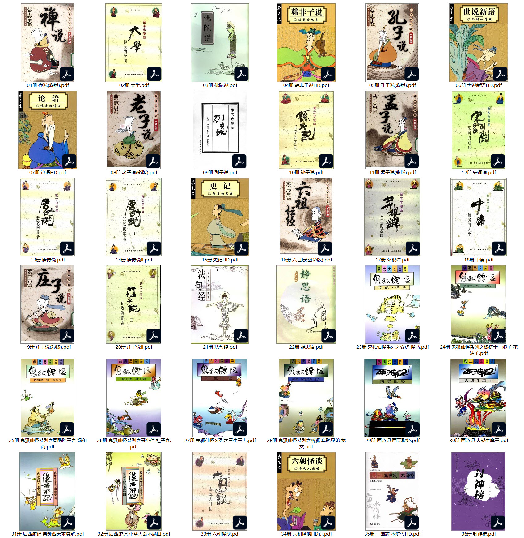 《蔡志忠典藏国学漫画系列大全集36册》PDF高清电子版,汇聚了国学大师蔡志忠先生的经典之作,以漫画形式生动演绎中华传统文化精髓。该系列涵盖诸子百家、诗词歌赋、历...