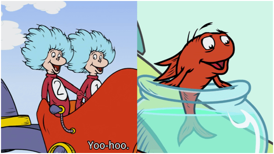 Thingone、Thing two和这条会说话的红色小鱼一直陪着The Cat in the Hat和孩子们一起去探索和发现世界,旅途中总是能帮助他们。