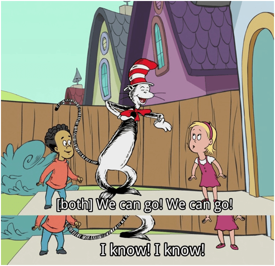 今天要跟大家分享的是由Dr.Seuss的这本The Cat in the Hat(戴帽子的猫)改编的一部动画片--The Cat in the Hat Knows a Lot About That(万事通戴帽子的猫)。