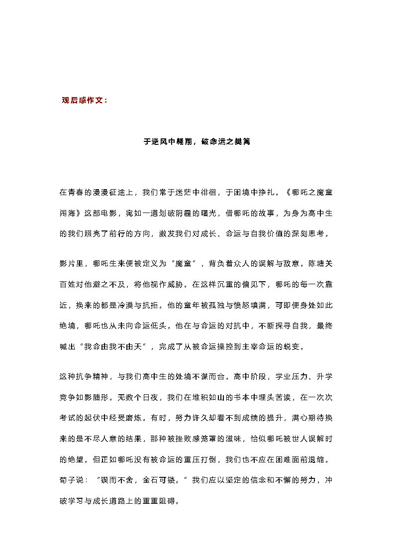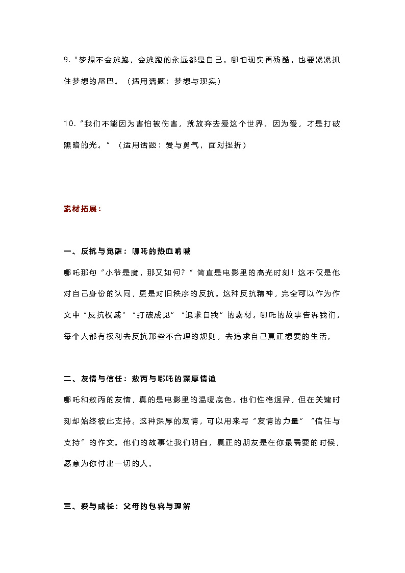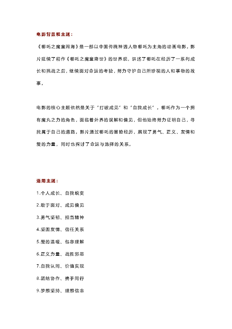 2025爆款电影《哪吒之魔童闹海》作文素材:适用话题+金句+标题+观后感+范文