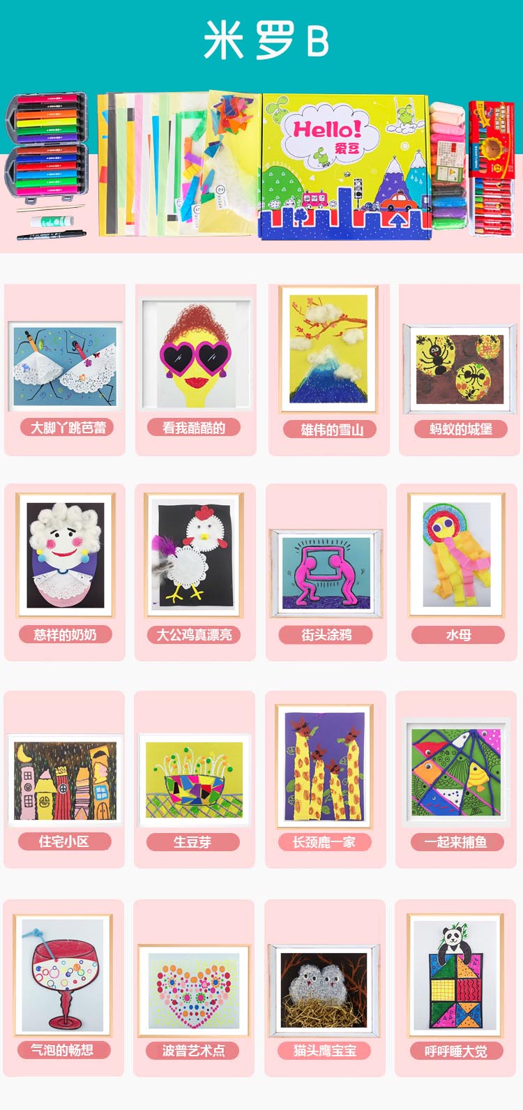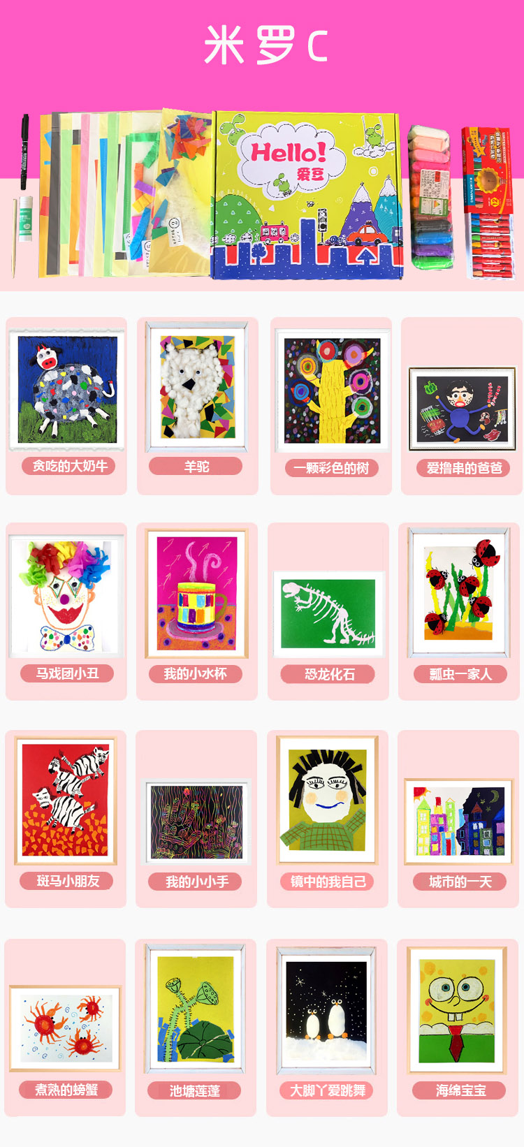 样样都让孩子爱不释手所有工具都封装在每节课的材料包里打开即用,方便之极节省妈妈们的宝贵时间让我们一起开启一段奇妙的艺术之旅吧