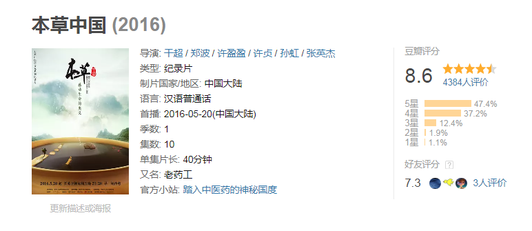 不好高骛远,不急功近利,纪录片《本草中国》在发掘那些匠人匠心的同时,纪录片制作团队的“工匠精神”也同样让观众买单。脚踏实地,止于至善,用心做出的纪录片自然会得到观众的点赞。