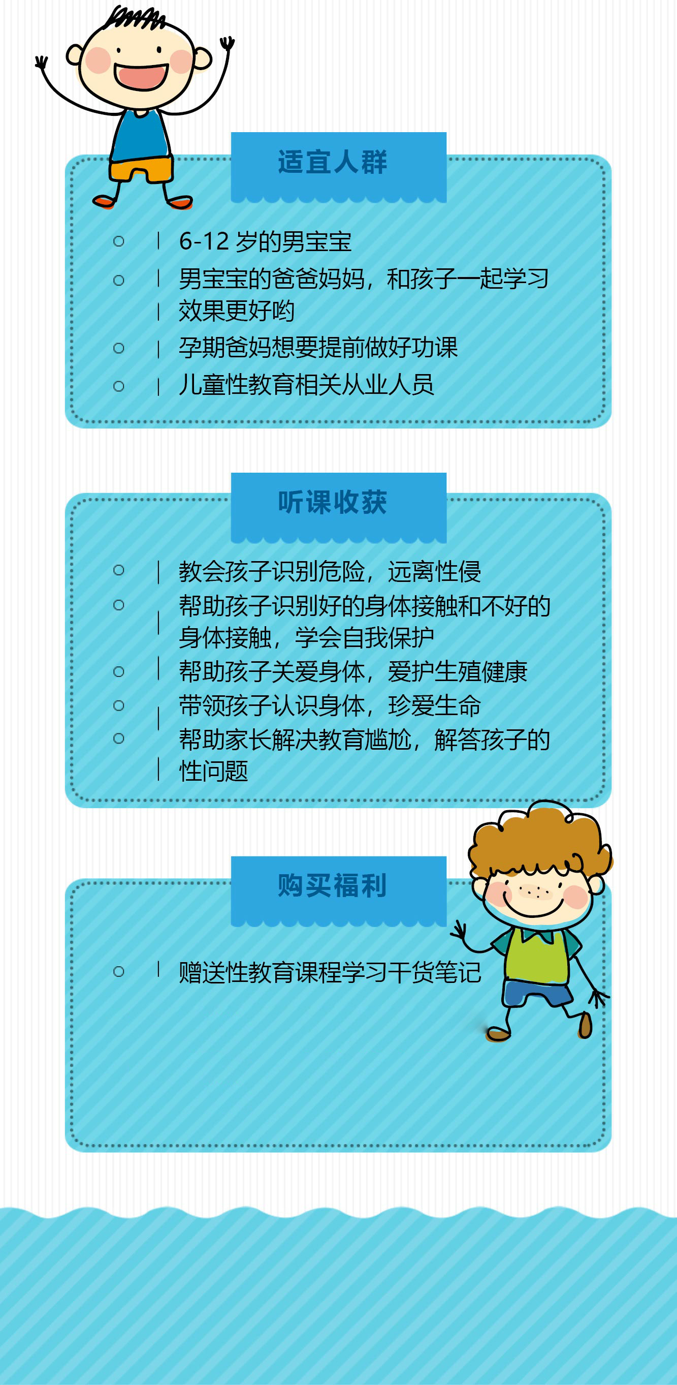 无忧学习网简介:让孩子学会自我保护,远离性侵害。父母不再尬聊,轻松沟通性教育话题。近几年,儿童性侵案不断发生,2016年媒体公开报道的性侵儿童(14岁以下)案件共433起,受害人778人,平均每天曝光的1.21起,平均每天至少有两个儿童遭遇性侵。而这些媒体曝光的案件只是冰山一角,儿童性教育问题已经迫在眉睫。
